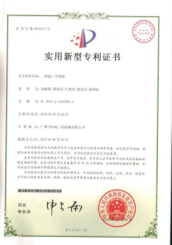 廣州市特威工程機(jī)械有限公司地處廣州市白云區(qū)神山鎮(zhèn),廣清高速神山出口附近,是一家施工升降機(jī)的專業(yè)生產(chǎn)廠家。公司成立于2011年,占地100000多平方米,注冊(cè)資金1060萬(wàn)元,現(xiàn)有員工300余人其中工程技術(shù)人員33人,高級(jí)技術(shù)人員52人。